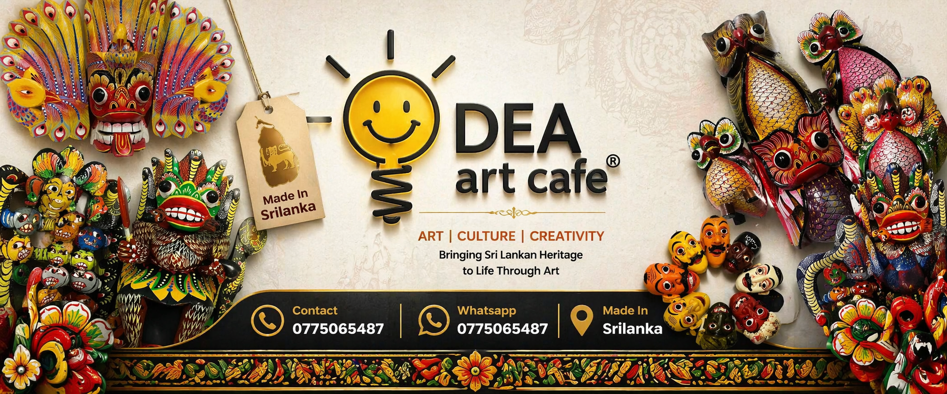 Handcrafted masks, paintings and artisan crafts — each piece carrying the soul of Sri Lankan heritage, shaped by hands and stories passed down for generations.